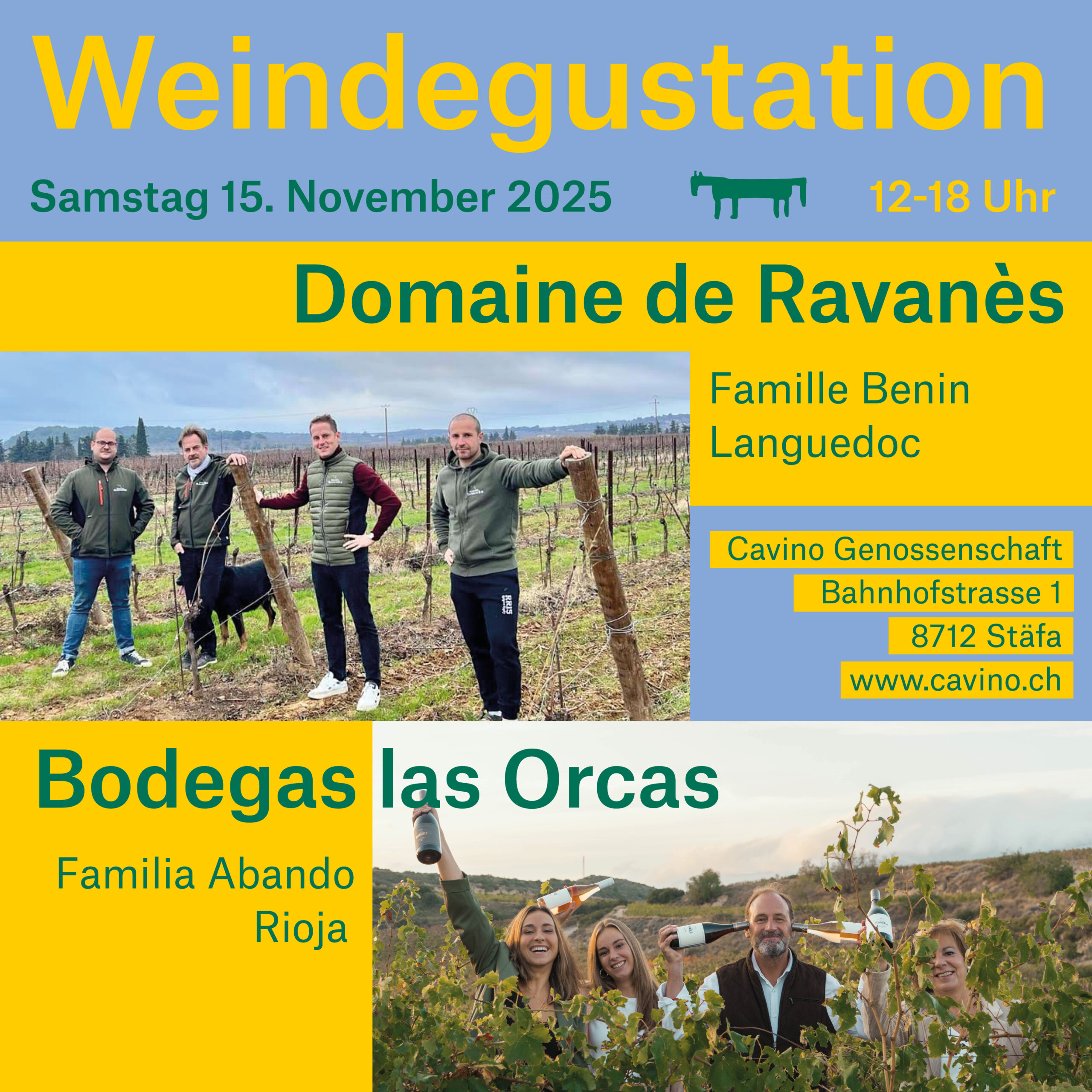Weindegustation am 15. November mit Domaine de Ravanès und Bodegas las Orcas